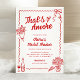Fira den blivande bruden med vår "Amore Hand plockade Italiana Inbjudningskort för möhippan!" Den här lekande röda designen med körsbärsröd design ger visuella handritade bilder av pasta, kaka, pizza, vin, blommigtar och bågar - vilket ger en charmerande liten Italien till firande. Perfekt för en italiensk möhippa eller en mer inspirerad möhippa brunch. Anpassa med din händelseinformation och skjut till la dolce vita!