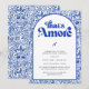 Det är Amore italienska blåa kakel retro bröllopsd Inbjudningar
