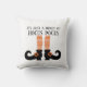 En modern halloween kudde med grafisk linjekonst av häxors skor med "det är bara en massa hokus pokus"-teckensnitt.