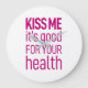 Deklarera dina behov med en dos charm i vår "Kiss me it's bra for your health"-garanti. Det djärva, men ändå enkla budskapet återges i ett rent, öga-infångande rosa-teckensnitt som tillför stil en aning söthet och tillförsikt. Det är perfektens skjorta för dem som tror att en kyss är det sötaste läkemedlet och ett enkelt sätt att visa upp en roligt personlighet.