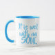 Det här kaffet mugg är ljusblått och har orden det är bra med min själ på båda ansikte.