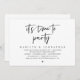 Modern svart-vit script-tema, bröllopsinbjudningskort för de som rymmer (det är dags att festa). Det är perfekt för er mottagning efter bröllopet / efterbröllopsfirande. Lägg till era detaljer i matchande svart teckensnitt / bokstäver.