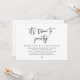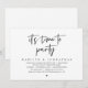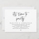Modern svart-vit script-tema, bröllopsinbjudan för vigsel i smyg (det är dags att festa). Det är perfekt för din mottagning efter vigseln i smyg / efterbröllopsfest. Lägg till dina detaljer i matchande svart typsnitt / bokstäver.