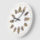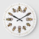 Väggklocka med olika drosophila-genetiska markörer, med ägg som markerar sekunderna och minuterna.