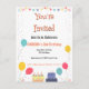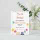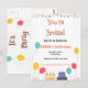 Det är dags för fest! Skapa spänning inför din födelsedagsfest med ljusa och färgglada, ballong-tema födelsebjudningar! Denna färgglada inbjudan har orden "Det är dags för fest" och Du är välkommen med festliga ballonger, stjärnor och prickar i en konfettimix.