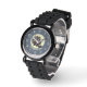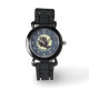 En konstig svart kattninja på en klocka. Användan "Anpassa den här mallen" om du vill ändra "IT'S ACTION TIME!"-texten och skapa en unik, anpassad gåva. Dags för din hemlighet att uppdrag med den här klockan, med en coola svart katt, tyst av fullt, som gör en flygande spark. Det flygande kattdjuret är utspritt i ninja-växeln med bälte och svärd.