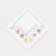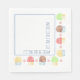 Roligtens napkin-design har ett flertal omslag av glass som växlar med rosa daisy. I napkins centrum finns ett blått block och text som lyder: "IT'S TIME FOR ICE CREAM".