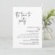 Meddela dig lyckligt i stil med vårt moderna manusdesignkort för bröllop elopement-festinbjudan. Det är dags att fira vårt lyckligtvis Allt efter det att festkortet för inbjudan är idealiskt för par som har bestämt sig för att resa sig och vill vara värd för ett party för att fira sin union. Med sin sofistikerade men lekfulla utformning kommer inbjudan säkert att ange tonen för en händelse som inte kan glömmas bort. Inbjudningskortet har en minimalistisk design med ett svartvitt schema, vilket gör att du får lite elegans i firande.