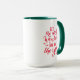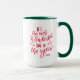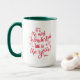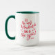 Anpassa den här muggen i helgdag med modern typografi "Det är den underbara tiden på året", spela med två tonar färg, den här är i grönt och vit. Rött skript med hollinembelling. En tankefull gåva.