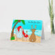 Letar du efter lite snöfågelhumor i jul? Då är detta kort perfekt. Handritad tomte som sitter på stranden med en ren.