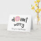 Det här födelsedagskortet innehåller frasen "Donut Worry, Det är din födelsedag" med en söt målad rosa som O. Inuti kortet står det: "Önskar en dag utan bekymmer. Grattis på födelsedagen!"