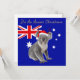 "Det är en Aussie-jul". En australisk Koala med den australiska flagga i bakgrunden.