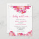 "Baby in Bloom" babydusch för inbjudan till flicka har handmålade blommigtar för rosa av vattenfärg. Designad och illustrerad med kärlek av Kristine Lee Designs www.kristineleedesigns.com