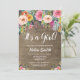 Det är en inbjudan till en tjej Blommigt Babyskare.Rosa. Garden Girl Baby Shower. Vattenfärgade Blommigtar Bränn bakgrunden. Land Vintage Retro.