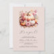 Den här söta babyduschinbjudan innehåller en vattenfärgsbild av en grupp pumpor i pastellskuggor, omgiven av rosa blommor. Nedan visas orden "Det är en flicka!" i elegant charcol grått handskriftsskript på rosa. Anpassa texten med namn i skriptet mamma till grått och detaljerna i grått sans serif.