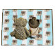 Cute babydusch eller byte av nyfödd bebis-gåva. Lite baby med en cowboyhatt och stövlar, sitta bredvid en nalle. Bara ett fint presentbyte!