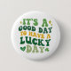 Känns tur idag? Visa din irländska själ i den här roligten! Den här lekande designen har en klöver med fyra löv och säger: "Det är en bra dag att ha tur." Knappen är underbar för alla som firar kärlek St. Patrick's Day för manar och kvinnor som njuter av att fira sitt arv. Roligtens utformning kommer att få människor att le och sprida den festliga helgdag. Det är det perfekta sättet att klä sig för St Pattys dag och känna sig lyckligt lottad!