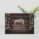Det är efter bröllopsmiddagen och festen, Bröllopsflykt Tillkännagivande / inbjudningskort, i Rustik lantlig trä, Strängljus design. Detta är perfekt för din bröllopsmottagning och efterbröllopsfirande. Lägg till dina detaljer i matchande typsnitt / bokstäver.