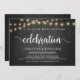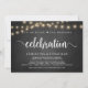 Det är en efterbröllopsfirande, Bröllopsflykt Annonsering / Inbjudningskort, i Rustik lantlig kritbräda, Strängljus design. Detta är perfekt för din bröllopsmottagning och efterbröllopsfirande fest. Lägg till dina detaljer i matchande typsnitt / bokstäver.