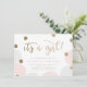 Gör ditt eget "Det är en flicka! | Rosa & Guld Confetti Baby Shower-inbjudningar med de här lättanpassade mallarna från Eugene Design. Den här snygga babyduschdesignen har ett faux-kalligrafi-teckensnitt från guld glitter med en modern, enkel typografi.