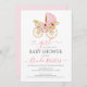 Det är en tjej, blommor och baby i guld, inbjudan till babydusch.