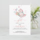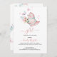 Det är en flicka, anpassade för en inbjudan till babydusch. Cute och färglös baby-kyckling med fjärilar, moderna vattenfärger illustrerar detta.