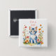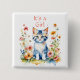 En söt liten kattunge omgiven av rosa och korallblommor vattenfärgsillustration. Det är en flickknappar.