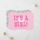 Ett sött sätt att tillkännage ett nytt tillägg till familjen, den här designen lyder "Det är A Girl!" i återutskriften. Anpassa med baby namn och födelsedatum eller vilket personligt meddelande som helst, och ett foto på baksidan.
