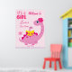 Det är en flicka som kläckte snart rosa dinosauer mamma med ett välkomsttecken för äggbabydusch.