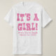 Ett gulligt långt som meddelar ett nytt tillägg till familjen, denna design, läser "den är en flicka!", i retro bokstäver. Personifiera med bebisnamn, och födelse daterar, eller något personligt meddelande.