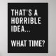 "Det är en hemsk idé... vad tid?" roligt citat.