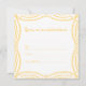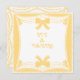 Det här inbjudan-kortet kan användas för att meddela alla typer av party, inklusive babyduschar, möhippor, födelsedagsfester, gender som visar party och alla andra typer av gruppsamlingar. Med ett allmänt tema med bögar och snöre kant i en elegant gult och vit färg-kamouflage är denna frilly mycket dekorativ och kommer att imponera på alla era inbjudna party. Fyll i informationen om party på baksidan med det tomma linjerna. Andra liknande konstruktioner och färg-kombier finns i min butik.