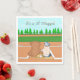 Cute lilla pojke sitta bredvid en nalle på en baseboll fält med hatt, handske och boll pojkens barndusch party-servetter.