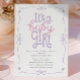 Öka duschen i flicka med vår charmerande inbjudan med ett beundransvärt program för lila och vit färg. Den här trendiget visar på en handdragen coquette-buk ram, som lägger till lite elegans och stollig till firande. Perfekt för att ange tonen för en minnesvärd församling, denna inbjudan förmedlar inte bara de viktigaste detaljerna utan återspeglar också glädjen och upphetsningen att välkomna er lilla. Gör ett varaktigt intryck på dina gäster och fira i stil med denna vackra inbjudan.