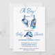Det är en liten blå baby-skor, en enkel modern hat inbjudningar