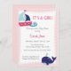 Babyduschinbjudan med nautiskt tema och en kombination av rosa-blått färg.