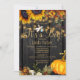 Chicens rostiga orange och gult guld hösten sjunker solblommor med torkad löv och löv, en liten stork som bär en pojke i en ljusblå filt och en vattenfärgspumpa över en mörk bruna lingerbakgrund med golden twinkle ljus skapar en charmerande elegant pojkens duschfest med trendig handskrift guld "Det är en pojke!" typografi. +++++++++ Enkel att anpassa med dina uppgifter! +++++++++++++ Lämpligt för traditionell höstfallsskorpa | land | bondgård | Barn som duschar utomhus.
