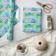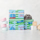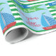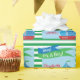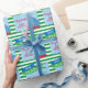 Denna baby showergåva som slår in papper, presenterar ett nautiskt tema. En bakgrund av grönt- och vithorisontalrandar betonas med grönt och blått som vinkar flaggor och en gullig segelbåt. Texten på flaggor läser: Ahoy! Det är en pojke! Anpassadetext låter dig tillfoga mödrarnamn.