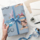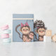 Du kommer att kärlek den här söta apan med en buggvagn och en fågel med blå vattenfärgsbakgrund. Kläddra för en pojke Shower!