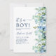 Det är en pojk-blå Blommigt-babyinbjudan.