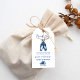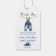 Det är en pojk-blå jeans-babydusch. presentetikett