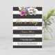 Svart och vit strimling Det är en pojkvän-babyskor party inbjudan med guld-blommigt och elegant-design. Perfekt för en babyskare. ÄNDRA ENKELT TEXTEN TILL KOSTYM DÄR PARTY & back-utskriften ingår.