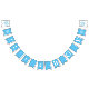 Det är en pojk-blå typografi babyskor Flaggor. Tvättbuntning av flaggor för en babydusch eller baby gender avslöjar party i blått och vitt färg. Texten det är en pojke är i trendigets typografi. Utformningen har blå och vita hjärtan.
