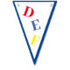Ord, "Det är en pojke!" i ljust, blått brev mot en vit bakgrund med blå gräns. Alfabet brev visas i primärt färg på första och andra flaggorna. Flaggor som separerar ord är blått. Designad för samordning med "ABC Baby Shower Collection". Även rött för flickor.
