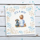 Det är en pojke! Blått och brunt pojkens pappra blöjor. Cute Vattencolor pojke och en Dachshund Puppy vid hans sida. Cute baby och hund babydusch.