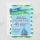 Denna fästes formade baby shower inbjudan har ett nautiskt tema. En bakgrund av gröna och vita horisontella ränder framhävs med en grön och blå viftande flagga på toppen och en söt segelbåt nära botten. Texten på flaggorna lyder: Ahoy! Det är en pojke! Anpassningsbar text i mitten av inbjudan låter dig lägga till din shower detaljer.