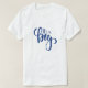 Det är en pojkblå t-shirt unisex, manar och kvinnokläder.