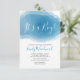 En enkel, men modern, elegant duschinbjudan till en pojke. Orden "Det är en pojke!" visas med vit handstil på en blå vattenfärgsbakgrund, med anpassade nedanför, inklusive namn i mamma som ska skrivas med blå handskrift. Den omvända har en matchande blå vattenfärgsdesign.