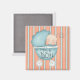 Den här magneten har en blå baby-buggy med pojke som pissar ut och ord "Det är en pojke!" på buggen. Den har en strimlad bakgrund.