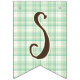 Grönt och brun "Det är en pojke!"... babydusch som buntar flaggor med polka dots och plaid mönster.